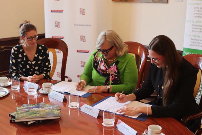 Memorandum na Krajském úřadu podepsaly ředitelka školy Ivana Dobešová a radní pro oblast životního prostředí a zemědělství Jana Skopalíková. Slavnostního setkání se zúčastnily i zástupkyně ředitelky SZeŠ Monika Brožová a Jitka Beránková, členka pracovního týmu UrbanGreening.